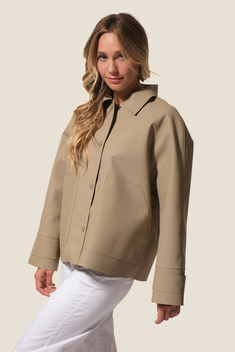 Le ciré EPONA est un imperméable court pour femme en PU double face, léger et résistant.